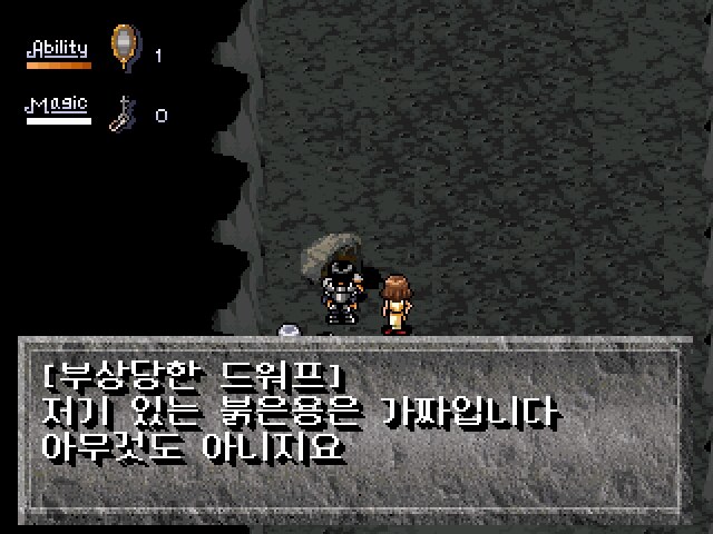 특정 시간대에 와보면 부상당한 드워프가 있다. 입구에 있던 거대한 빨간용은 캐라덕스가