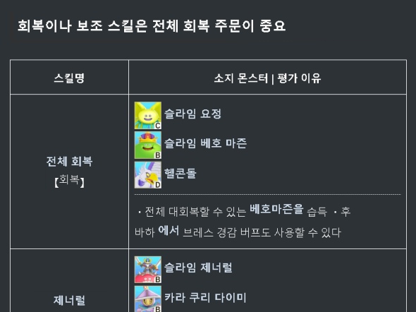 [공략/팁] 중반 추천 몬스터와 스킬들