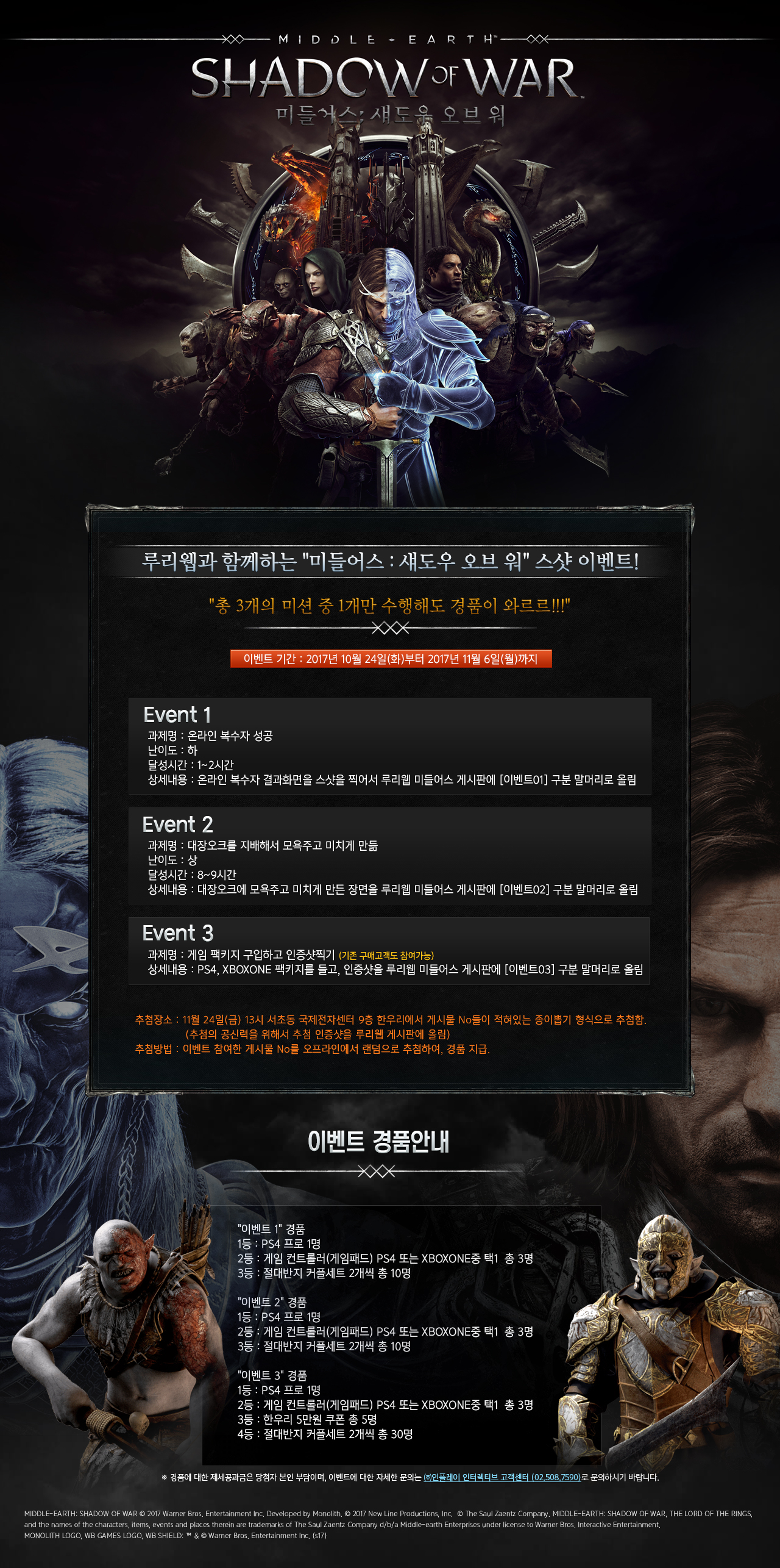 [공지] "미들어스 : 섀도우 오브 워" 스샷 이벤트