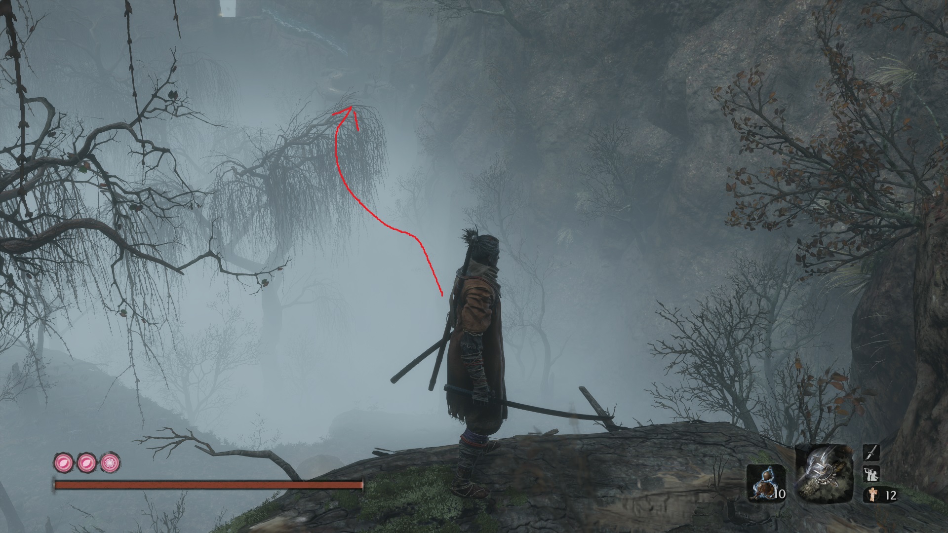 도중에 역삼각형 마크 갈고리 나무가 있는데 넘어가면 흰색 쌍칼 원숭이느님이 있으니 주의. 갈고리를 두번 잘 하면 뒤편으로 가서 인살이 가능하긴 합니다.