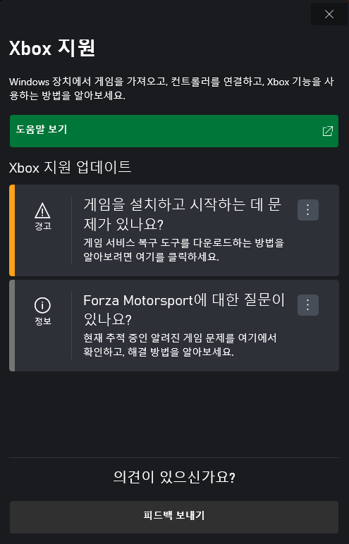 XBOX앱은 최신으로 업데이트 하신거죠? 앱 오픈후 맨 왼쪽 제일 위 자기 프로필 선택하고 설정/정보에 보면 2309.1001.3.0 15.81.24001.0(게임 서비스) 5.823.7272.0(Xbox Game Bar) 요게 최신이구요. 최신상태시라면 끝으로.. 다시 프로필/지원을 클릭후 해당 섹션에서 도움을 받으셔야 할거 같습니다..