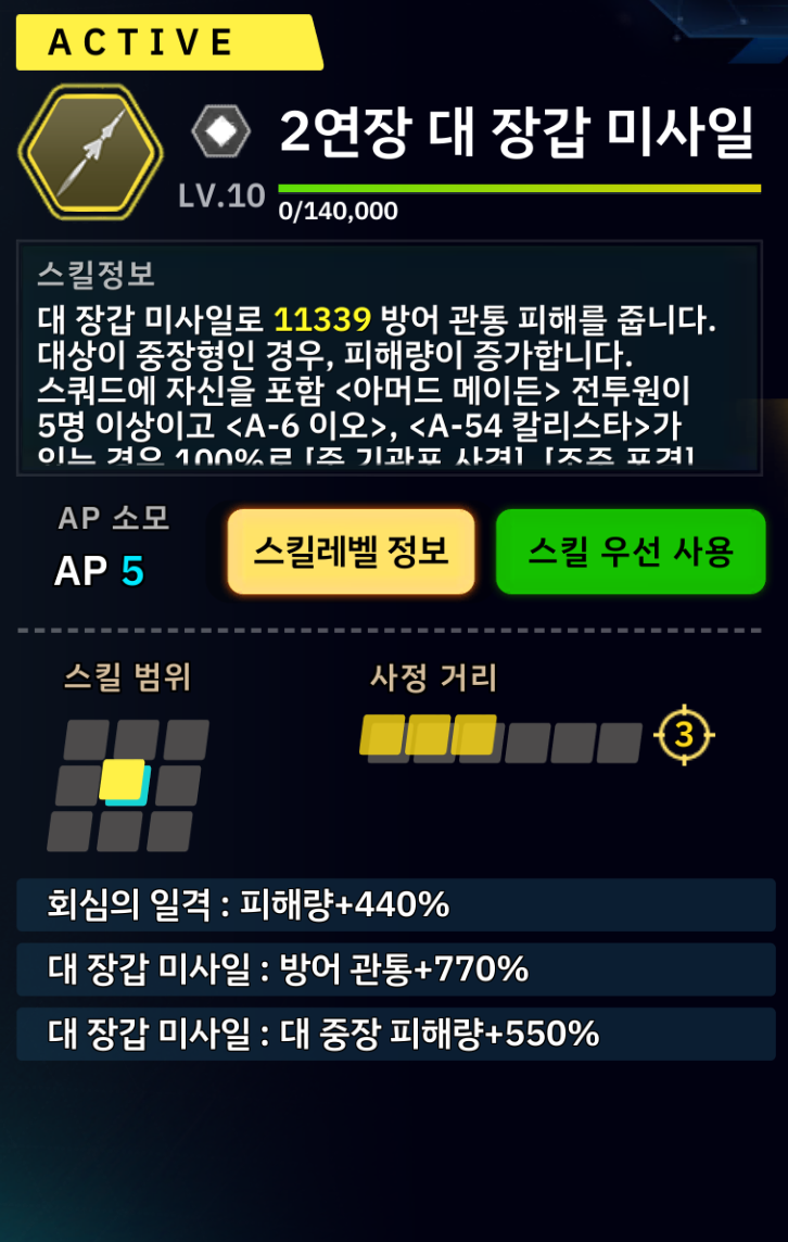 그리고 현재 1액티브의 방어관통과 대중장 추가 피해가 0이 하나 더 붙어서 10배로 적용되고 있는 버그가 있습니다