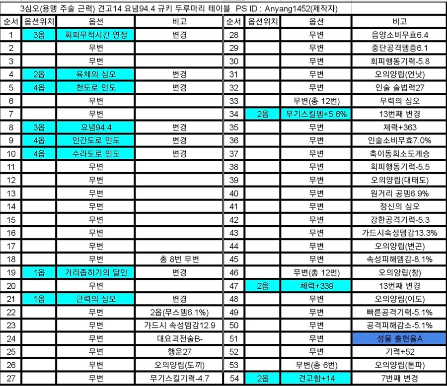 제 규키 테이블이니 이거 보고 따라하심 됩니다 | 25.11.23 11:27 | |