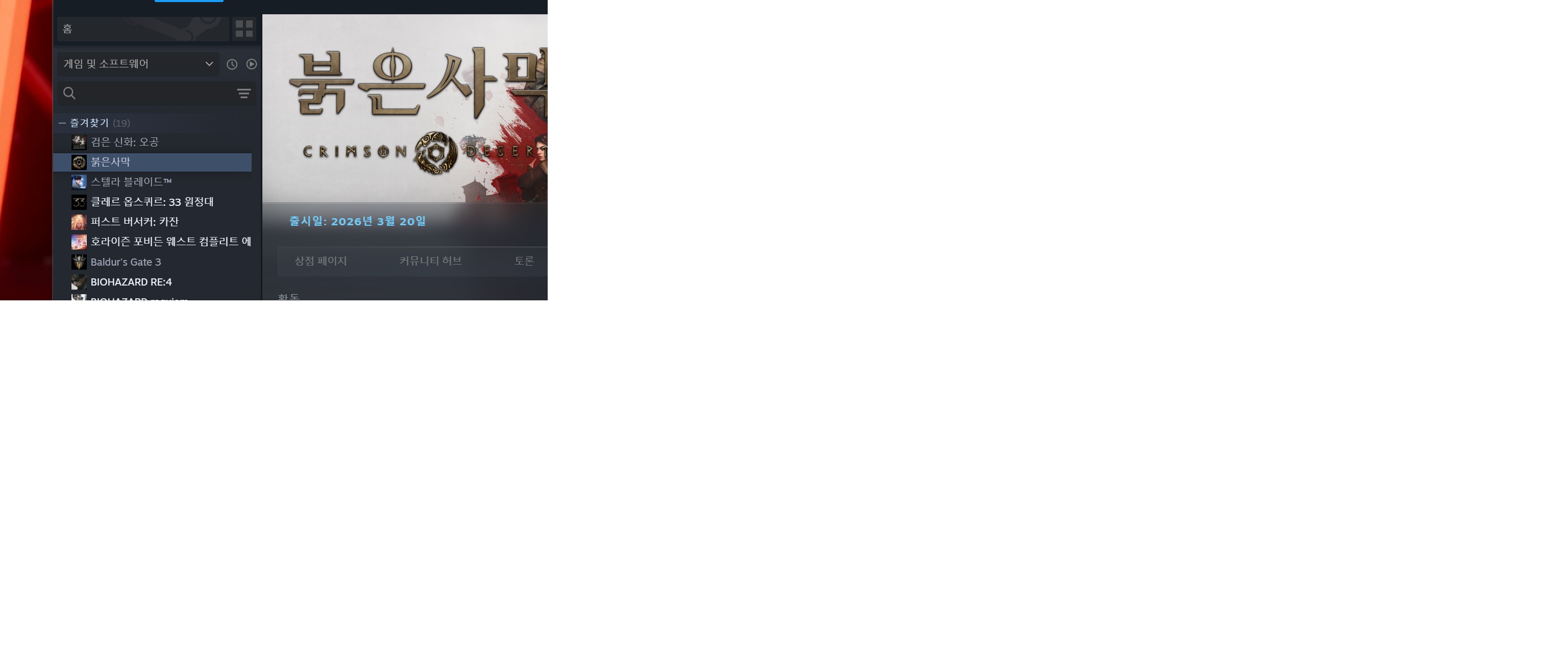 유통사펄어비스일정[출시] 2026.03.20 (PC)[출시] 2026.03.20 (PS5) [출시] 2026.03.20 (XSX) |