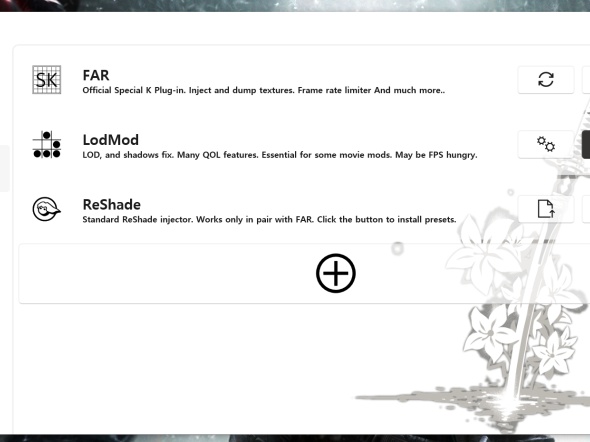 별거없어요 FAR(현 Special K)와 ReShade는 앞서 설치했기에 절대 건드리지마시고 LodMod는 컷씬 업스케일링 모드 까실때 필요할텐데 까실꺼면 설치하시고 아니면 설치안하셔도됩니다