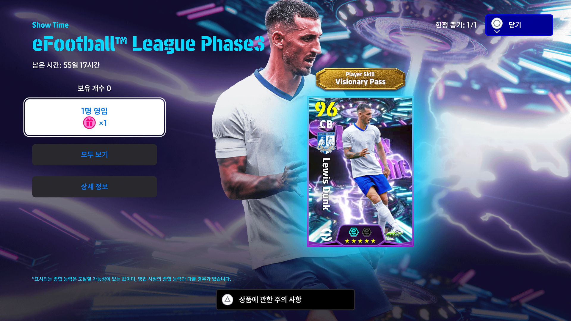 [정보] (뽑기) 25.10.09 - 쇼타임 : 루이스 덩크 (디비전 순위 보상)