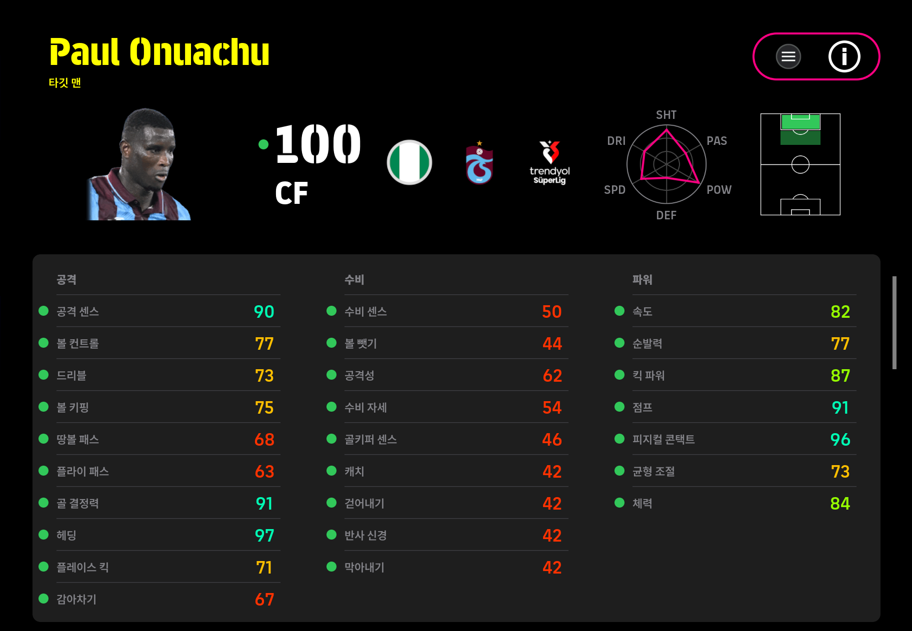 슛 9, 드리블 4, 민첩성 9, 하체힘 8, 공중볼경합 8, GK1 4 입니다 더블부스터는 공중볼 달아주었고, 감독은 시모네 인자기입니다^^ | 25.11.14 23:56 | |