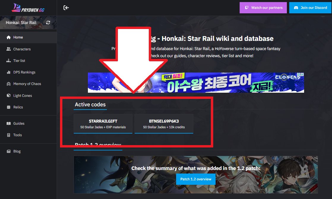 가운데부분에 Active codes가 현재 입력할 수 있는 가장 최신 코드 입니다. 아래 바로가기 링크로 이동해 주세요