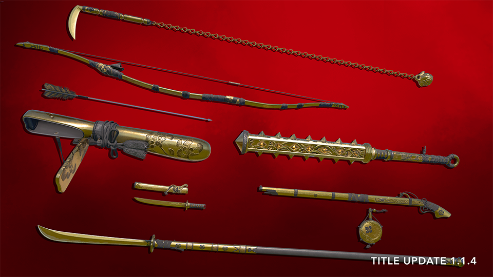 TU 1.1.2에서 추가된 금빛 카타나와 오카타나는 여전히 새 게임+에서만 획득 가능하지만,