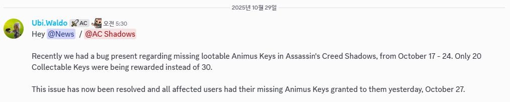 [정보] [애니머스] 필드에서 수집 가능한 열쇠 누락 버그 수정