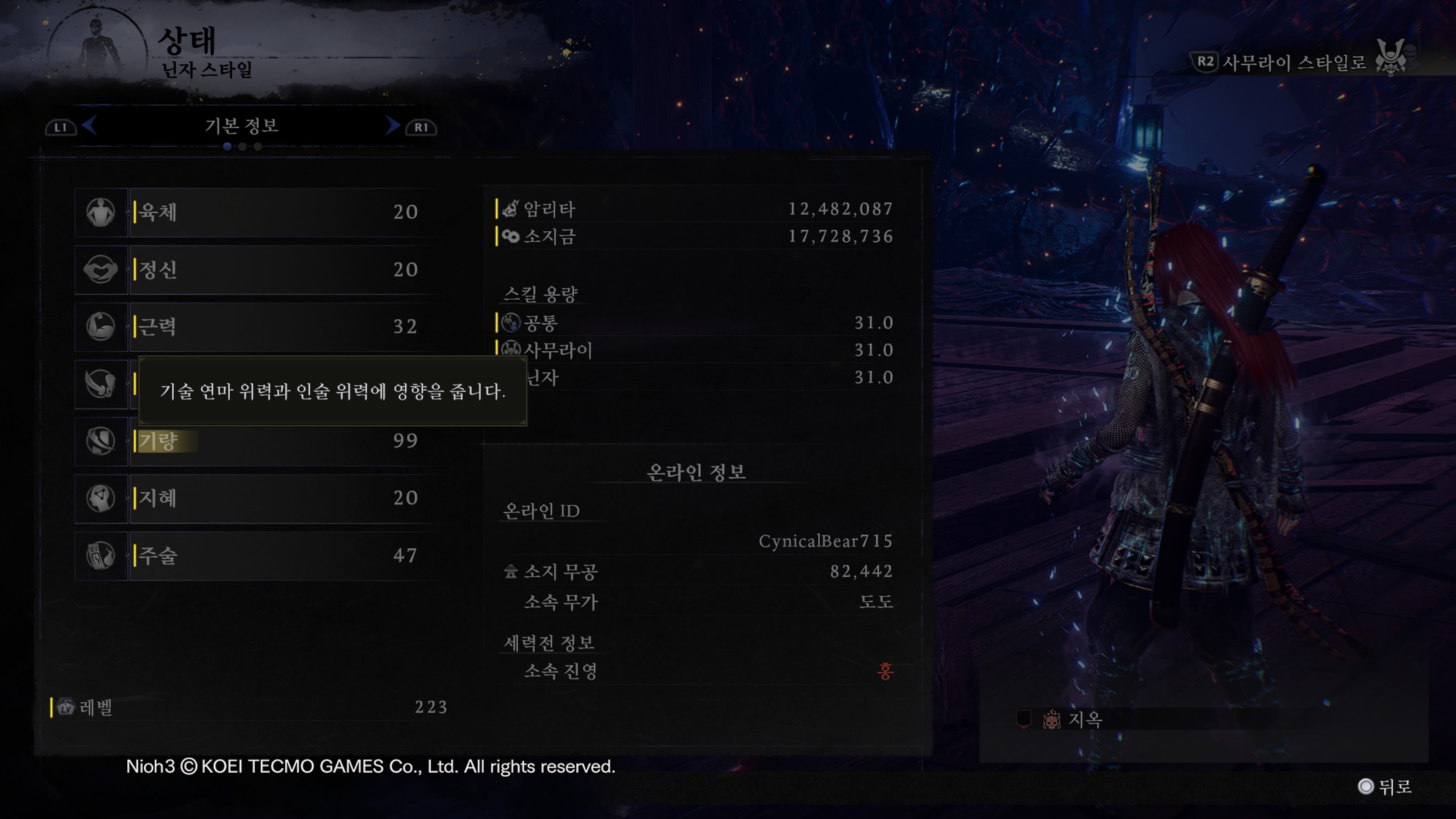 기량을 올려야 인술 데미지도 올라갑니다