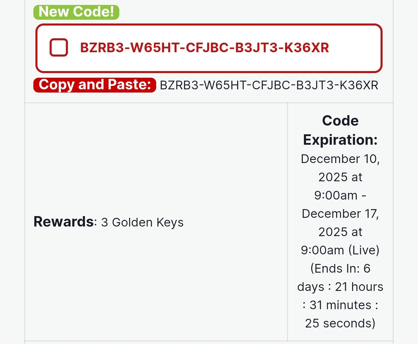 [정보] 12월 17일 까지 쓸 수 있는 골드키 코드입니다. [2]