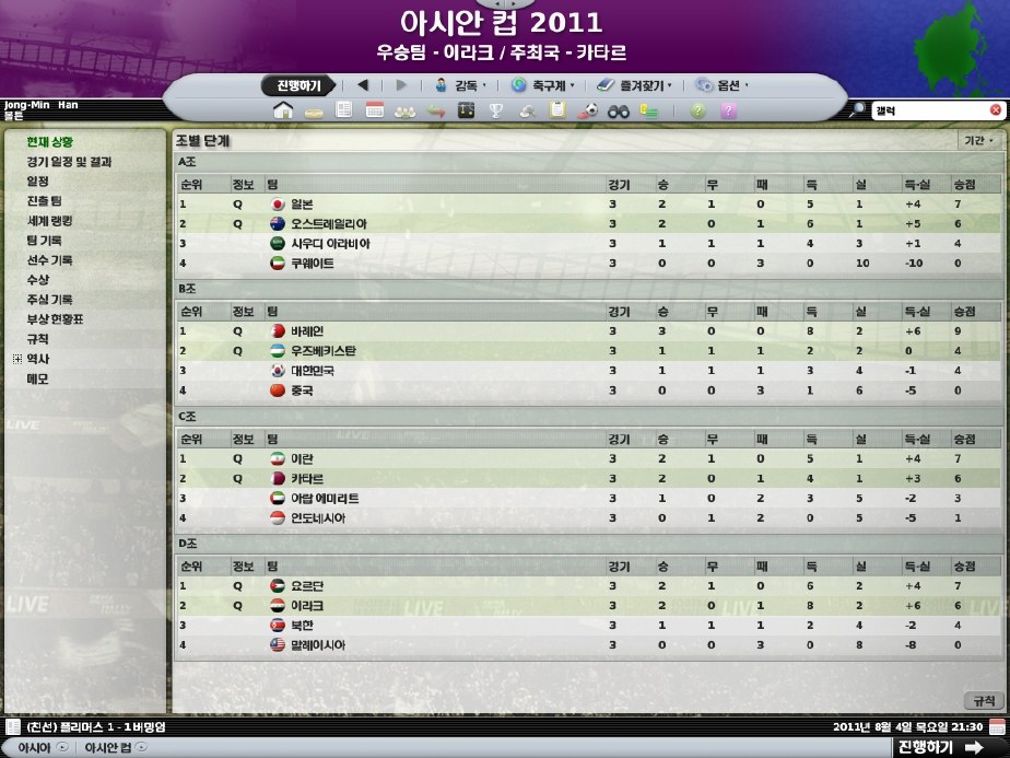 [FM] FM으로 보는 2011년 카타르 아시안컵 결과 [1]
