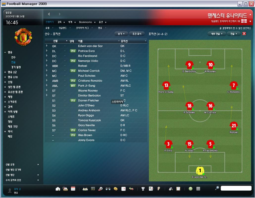 FM2009는 아직 안해봐서 모르겠는데 포메이션 완전 공격적이네요;; 측면 뒷공간 털릴것같은데;