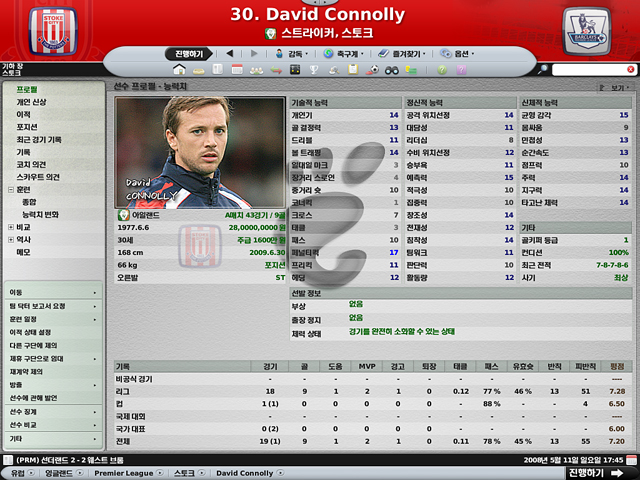 스샷은 fm 2008 스토크시티 첫시즌 5위