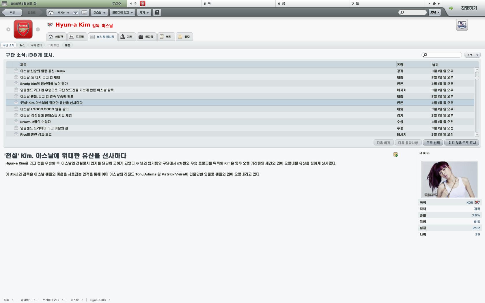 [스샷] [FM2010] 아스날의 전설이 되었습니다. [4]