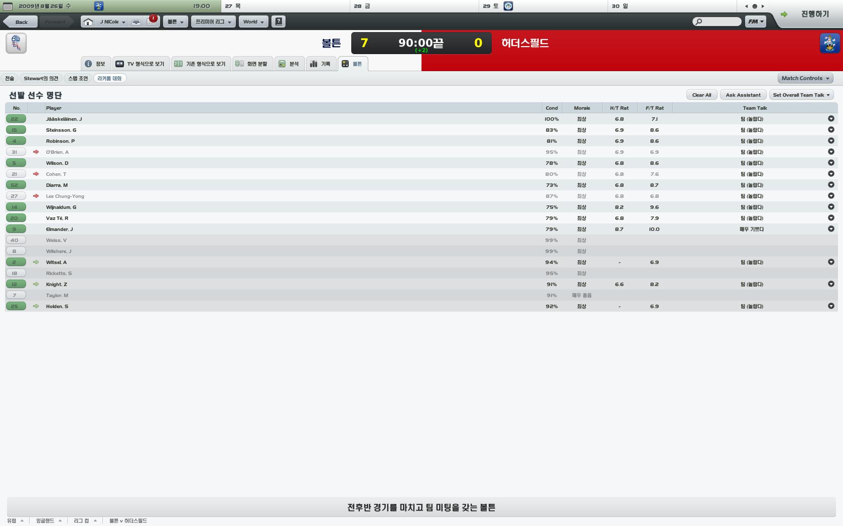 6골 ㅎㄷㄷㄷ 남자라면 약속된 파멸의 팀 포츠머스로! 시작하자마자 주급 -2억원의 꾸준한 재정적자 + 임대 6명 + 장기부상 6명 선수단 어떻게든 정리한다 해도 적자는 매꿔지지 않고... 구단주가 구단팔려고는 하는데 사는 사람 왠만해서는 절대 안나오고... 승점 삭감은 거의 90%이상으로 피할수 없이 예정되있음. 왠만하면 99.9%의 확율로 강등일듯한... 과거 리즈 그 이상으로 최고 난이도의 게임일듯