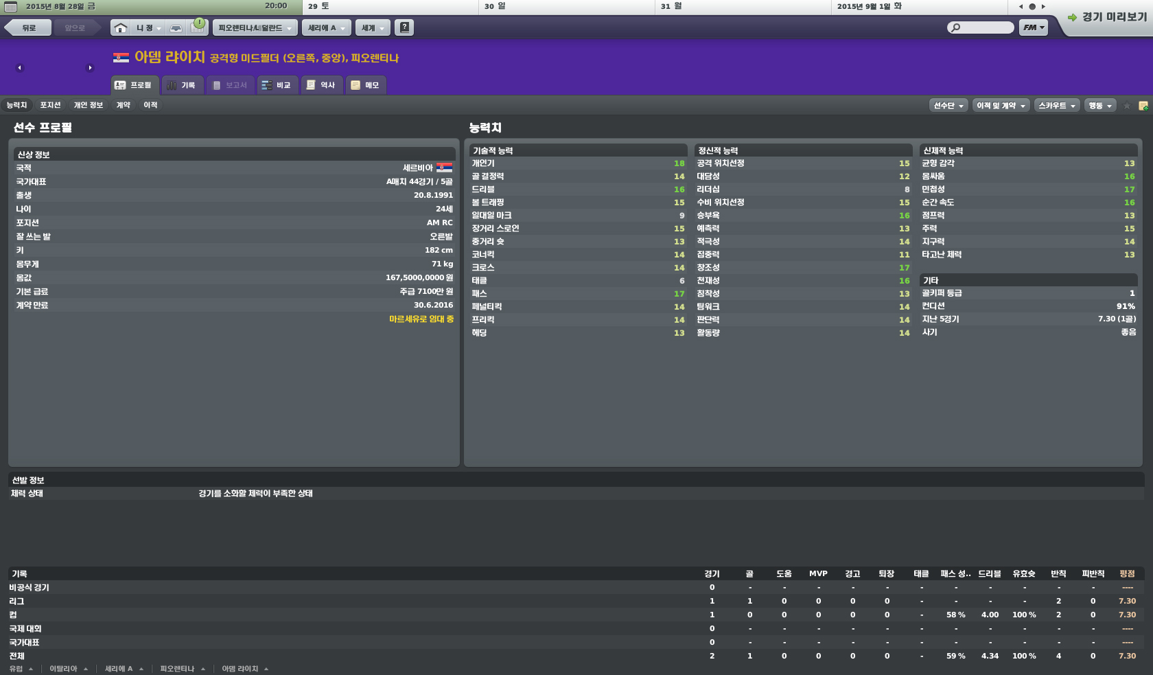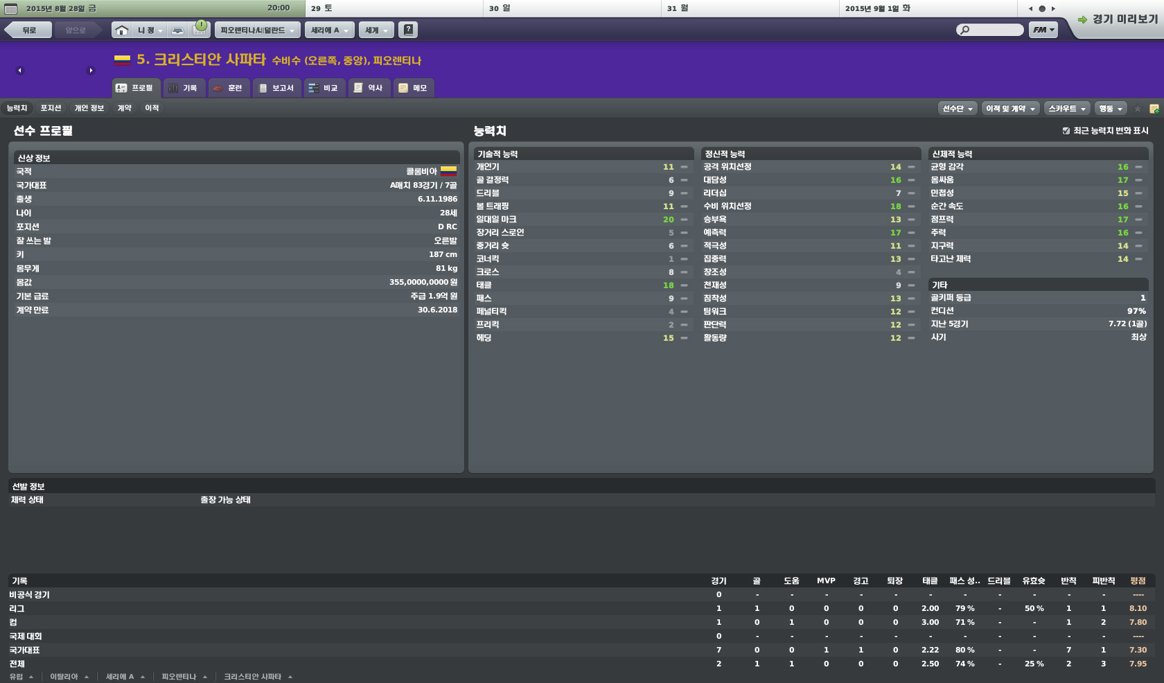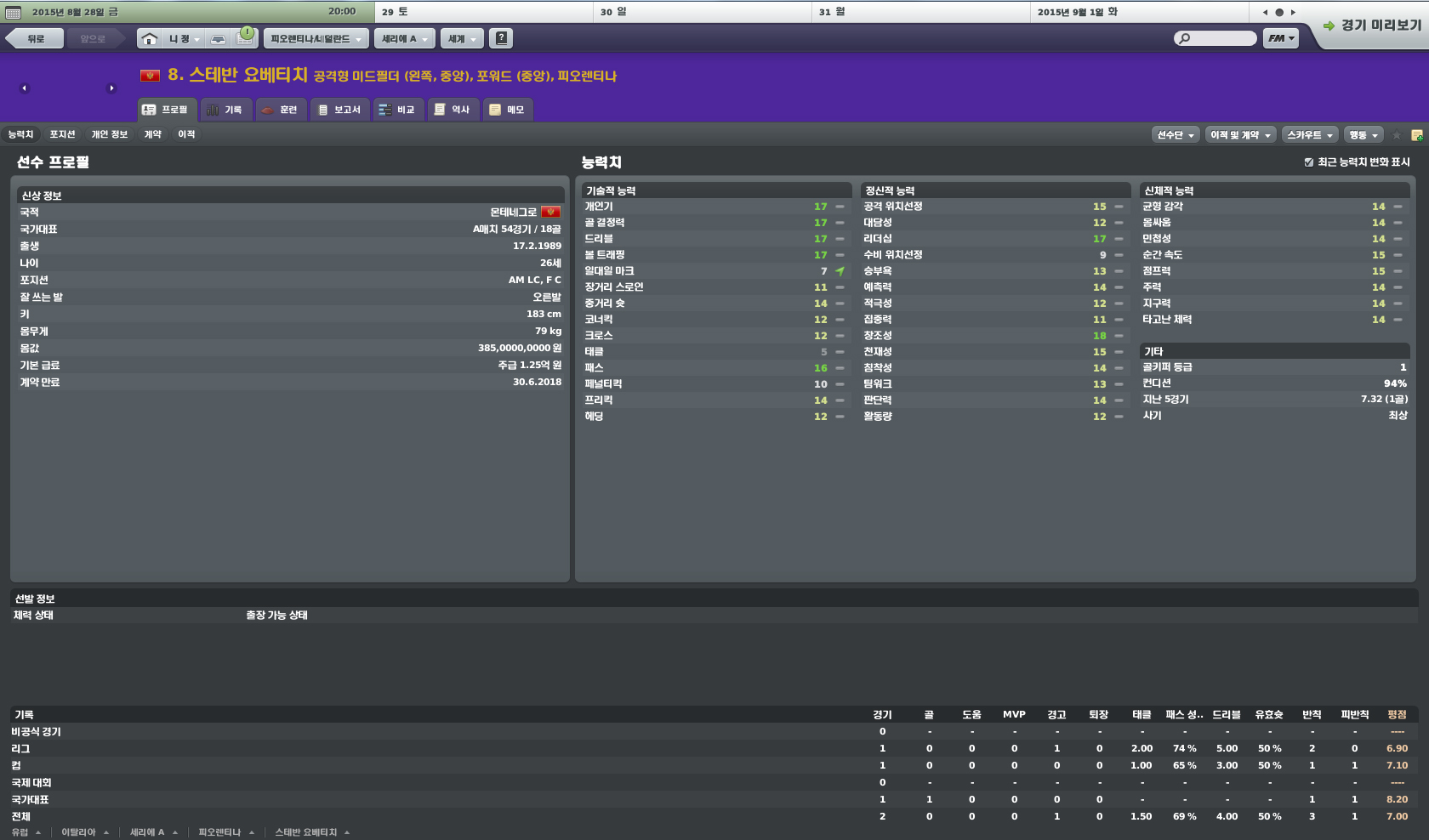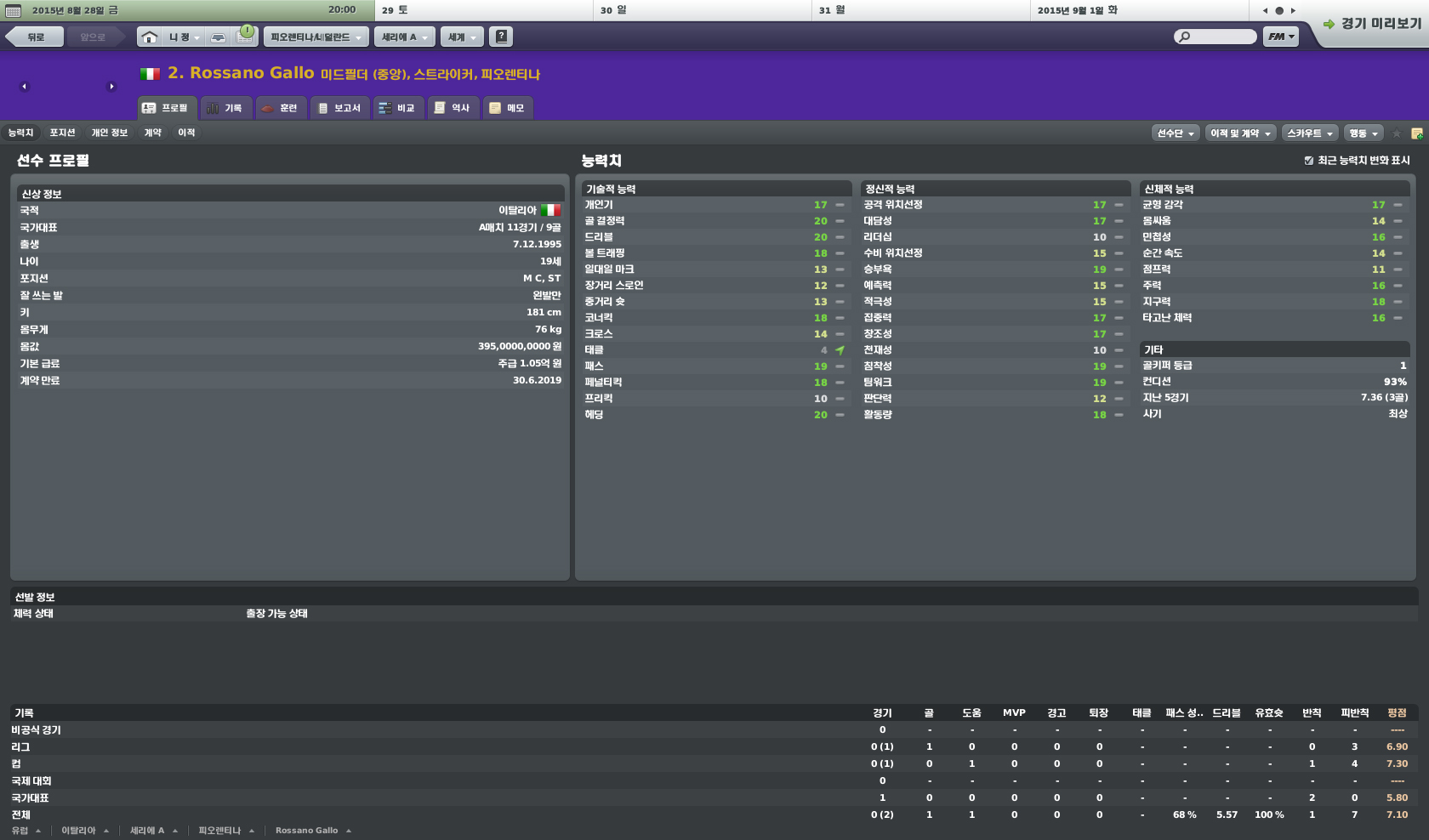 먹튀가 된 질라르디노의 후계자입니다. 몇시즌을 임대보내고 하다보니 요상한 능력치로 키워졌더라고요 -_-;;;좀 아쉽네요. 그래도 엄청난 능력을 보여줍니다.