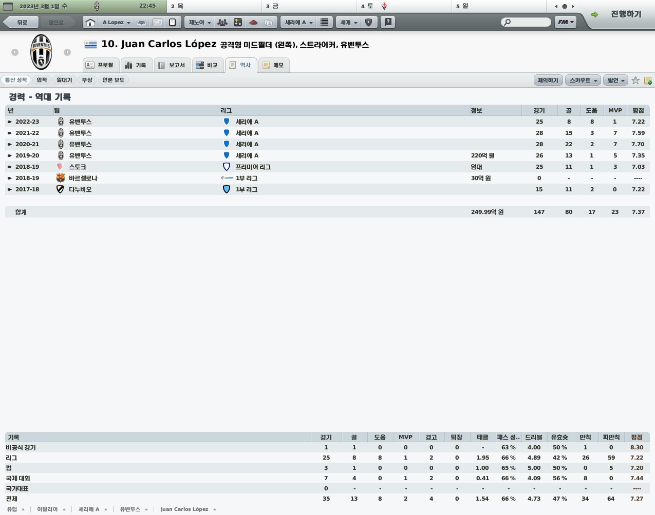 마지막에 선수는... 바르샤가 관심가지기에 비야레알 때 영입하려 했었는데 실패하고 이후에도 실패하고 했던 선수입니다. 뭐야 이런놈으로 자랄거면 단위수 하나 올려서라도 영입할껄 ㅠㅠㅠㅠ