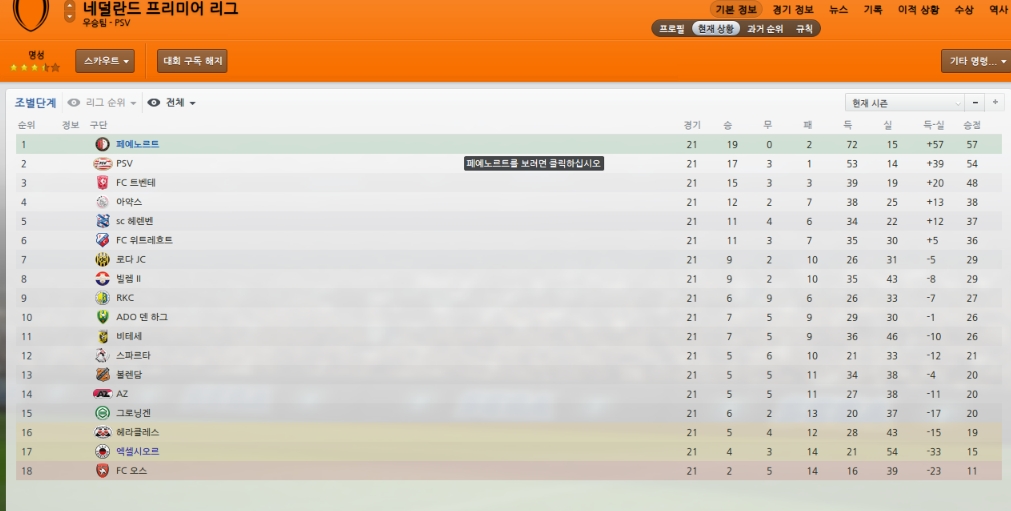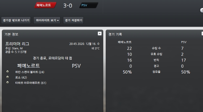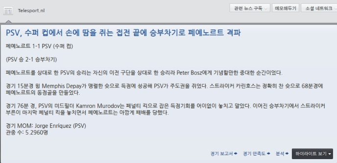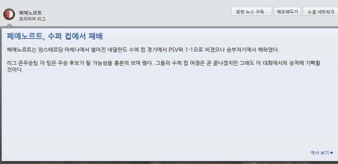 이번시즌 가장강력한 라이벌 PSV와는 홈에서 1승씩 주고 받았습니다.