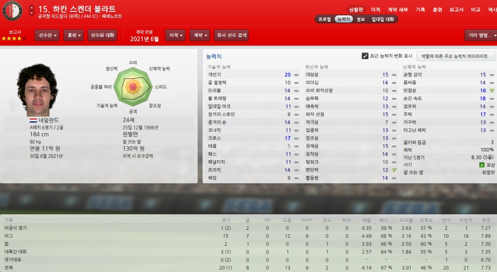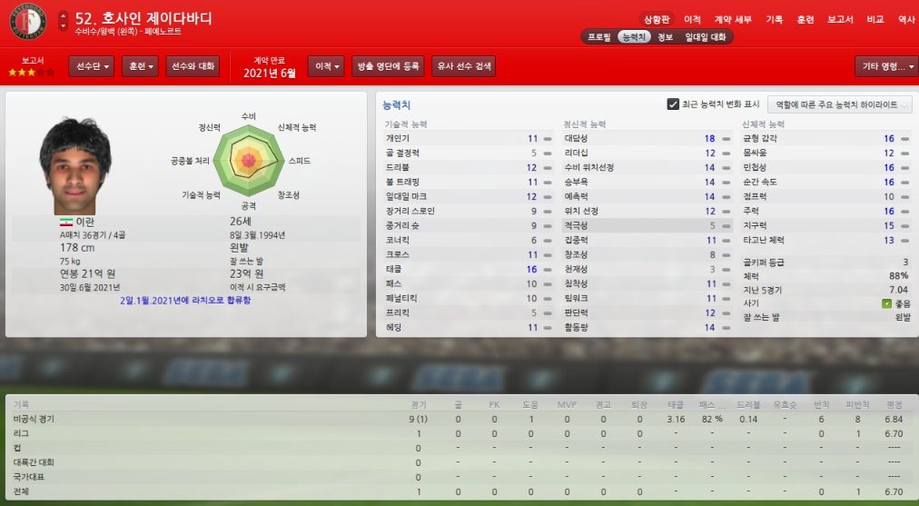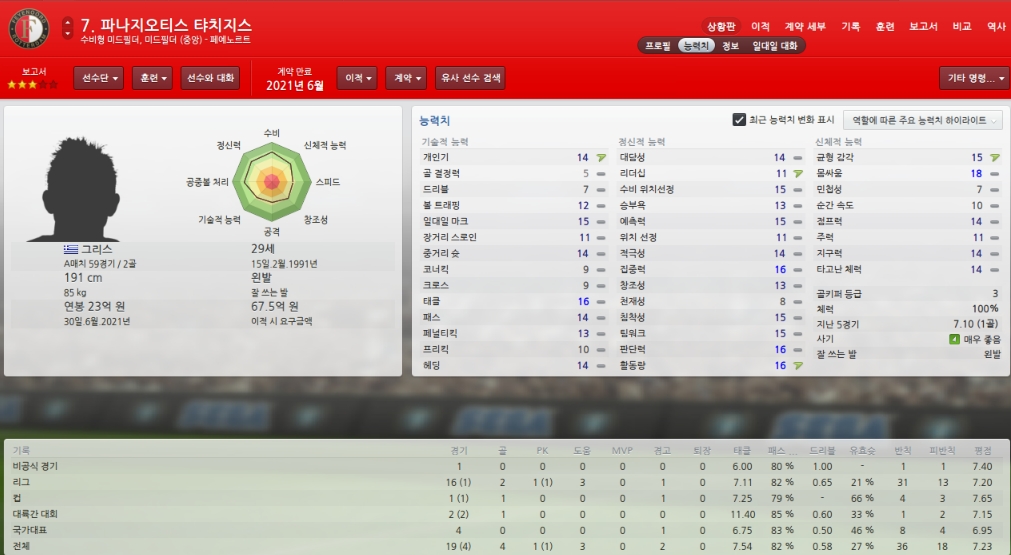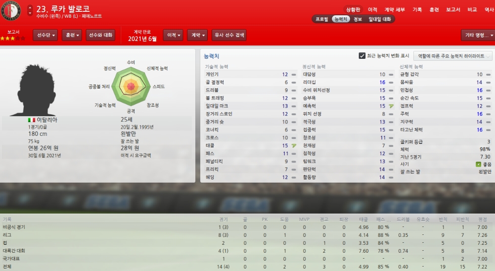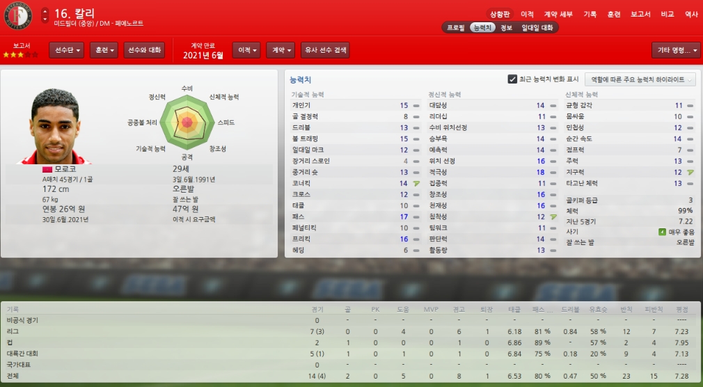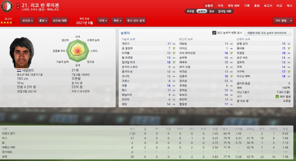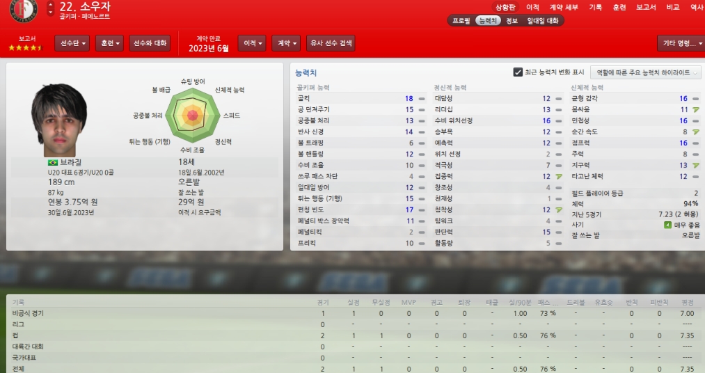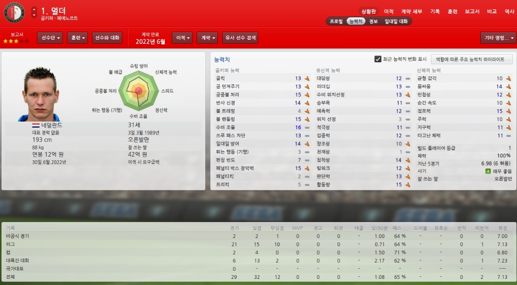 능력치하락하고 있어 걱정이지만 팀에서 가장 믿을수 있는 골키퍼입니다.