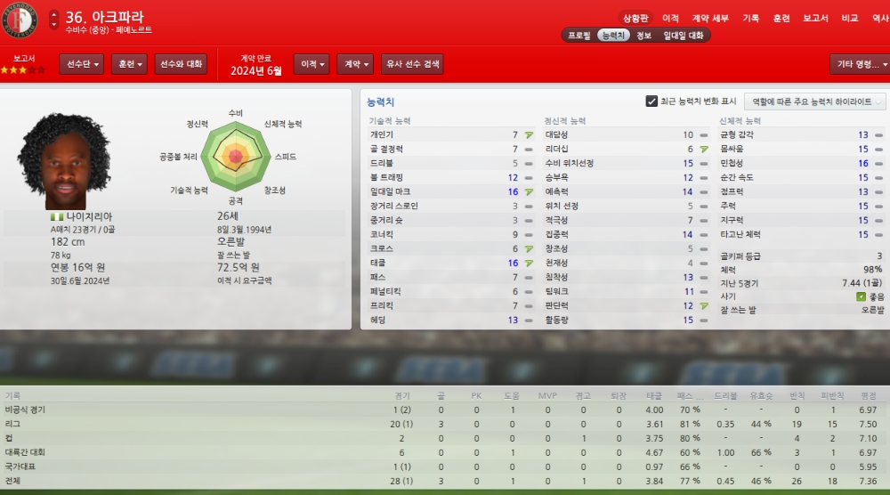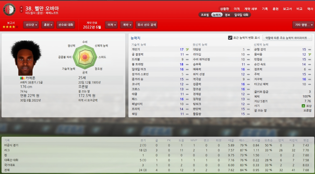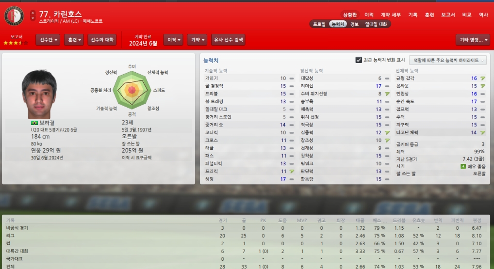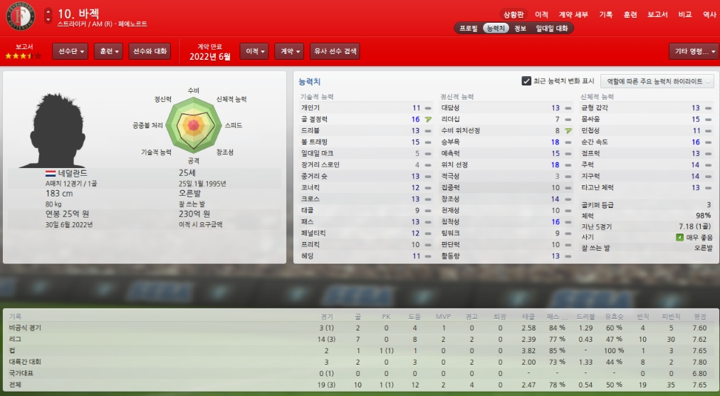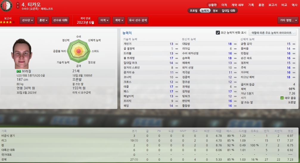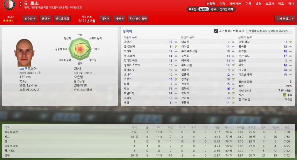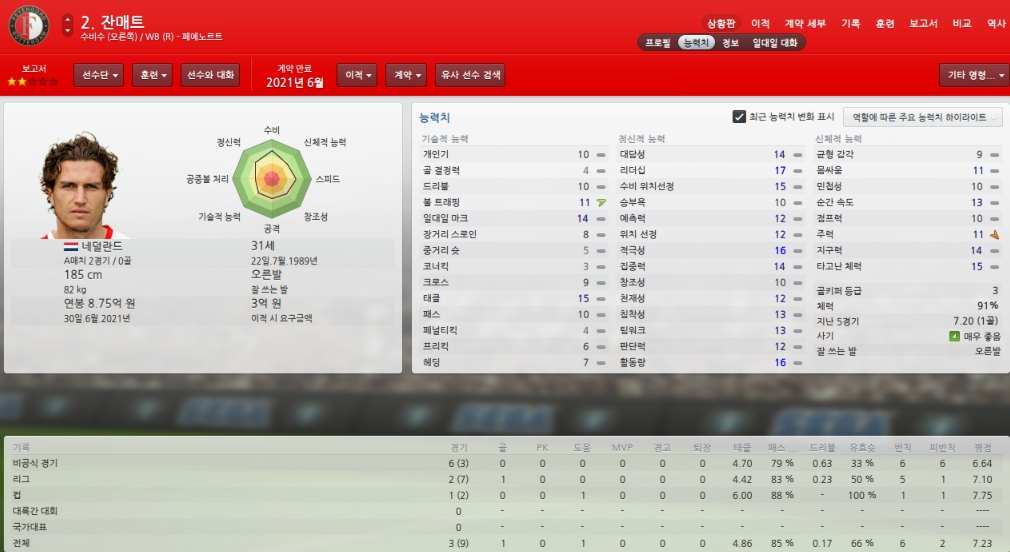 능력치하락하고 있어 걱정이지만 팀에서 가장 믿을수 있는 골키퍼입니다.