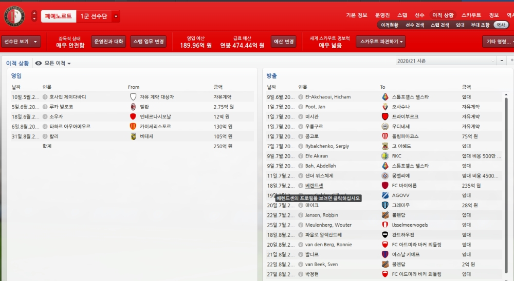 호사인선수는 왼쪽수비경쟁에서 완전히 밀려 팀에서 떠나게 됩니다.