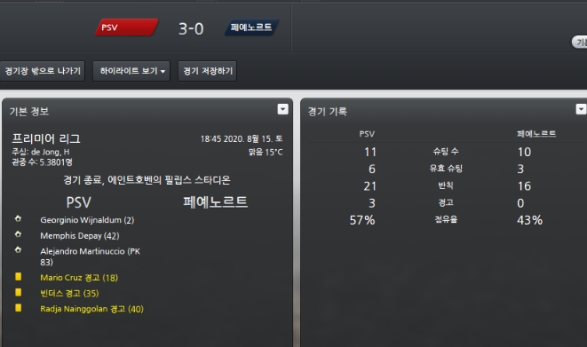 시즌전 치루는 슈퍼컵에서 PSV에게 승부차기 끝에 패배합니다.