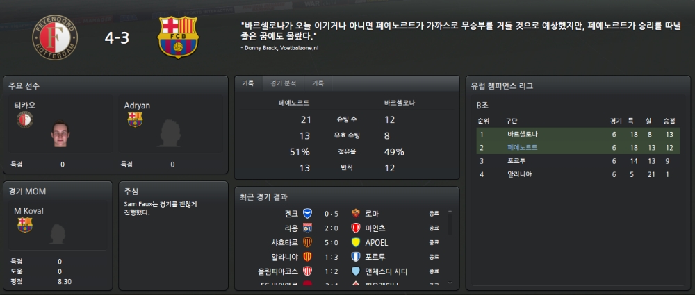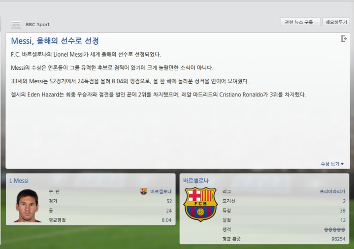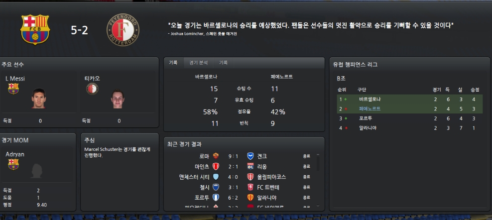 바르셀로나를 꺽었을땐 정말 짜릿했습니다.