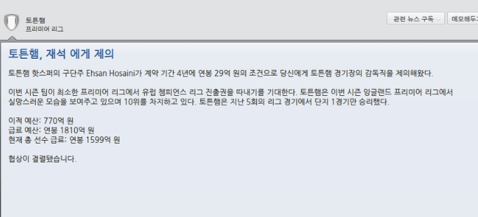 토튼햄은 시즌10위를 달리고 있으며 챔스티켓확보를 요구해서 포기했습니다.