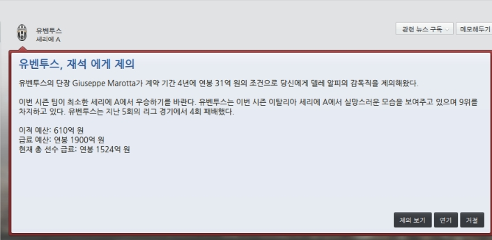 유벤투스는 시즌 9위를 달리고 있는데 우승을 요구 하고있어서 포기했습니다.