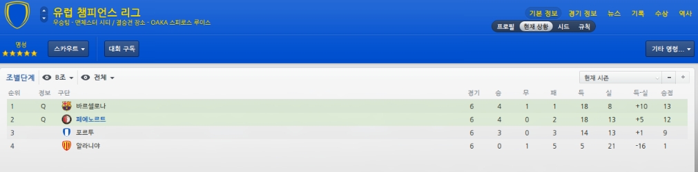 챔스에선 조 2위로 통과했습니다.