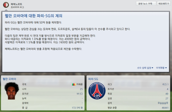 이적제의 50억 옵션에걸려 여러구단에서 제의가 왔습니다.