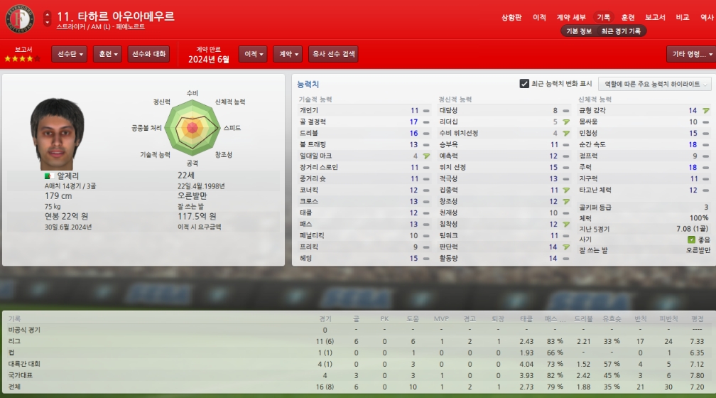 아우아메우르선수 리그11회출천 6골 6어시 MVP 1회중입니다.