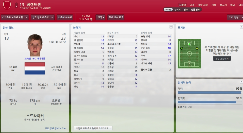 오른쪽 왼쪽 수비 양쪽다 소화할수 있어 후보로 효율적으로 사용할수 있는 선수입니다.
