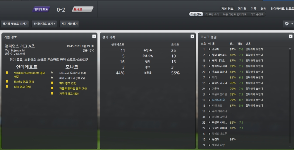 75분 모나코 파바노 리고니 쇄기골 (2-0)