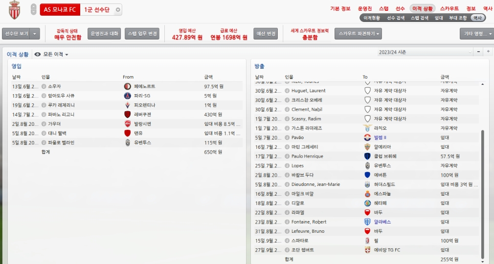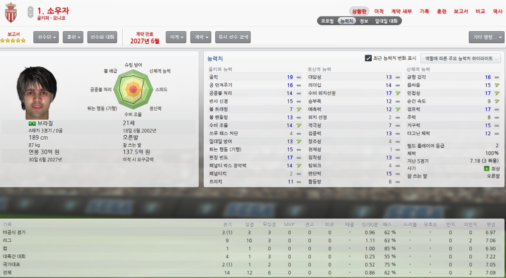 페예노리트의 유망주GK였던 소우자선수를 97.5억이적조항으로 영입해