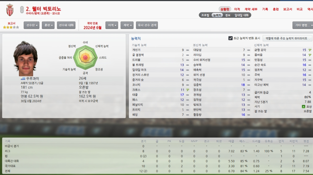 주전라이트 윙백 웰터 빅토리노 선수입니다.