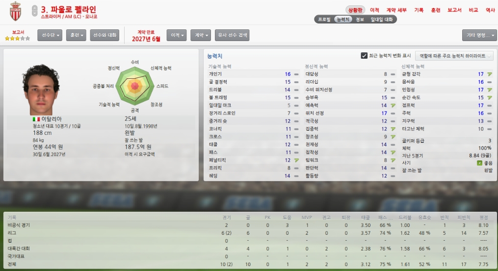 주전 공격수로 자리매김을 한 파울로 펠라인입니다.