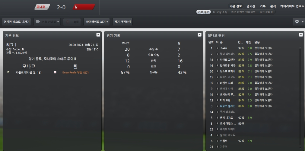 3위 순항중인 릴과의 경기에서 2-0으로 승리하였습니다.