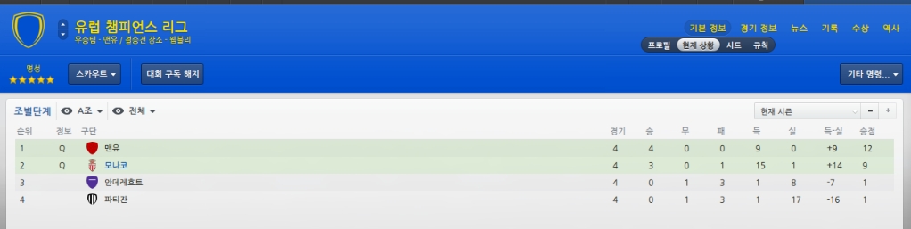 챔피언스리그에선 맨유에 이어 2위를 달리고 있습니다.