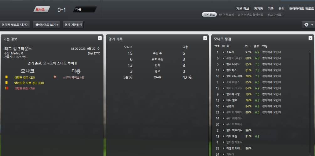 컵대회에선 디종에게 패하여 조기탈락했습니다.