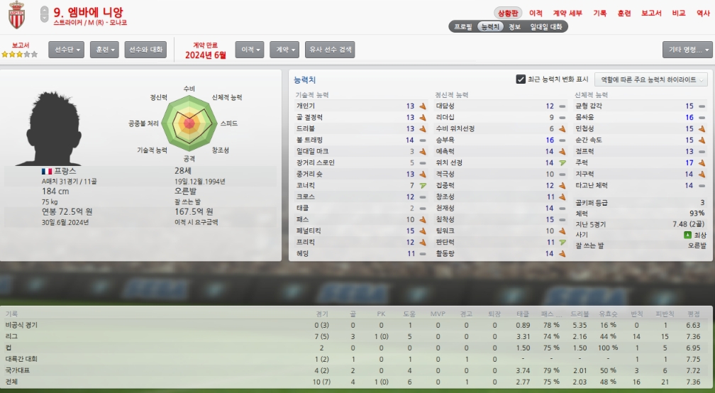 엠바에니앙은 라이트윙주전자리를 놓코 가우더랑 힘겨운 경쟁을 하고 있습니다.