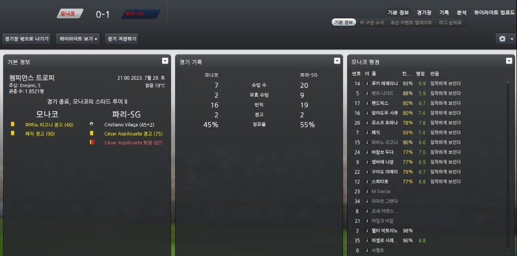리그시작전 열리는 챔피언스트로피에선 파리SG에게 또 패했습니다.