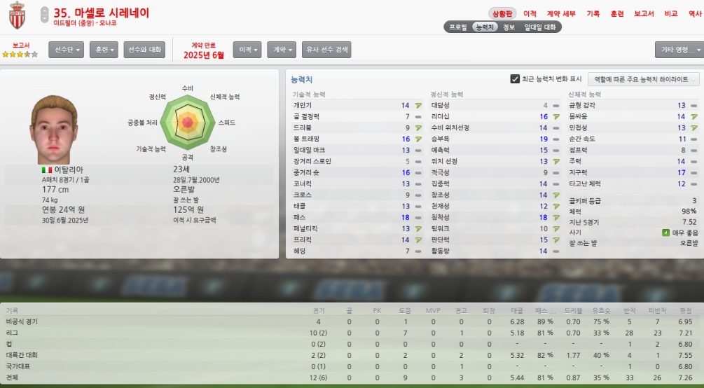마셀로 시레네이는 중원에서 지난시즌보다 한단계 성장한 모습을 보이고 있습니다.