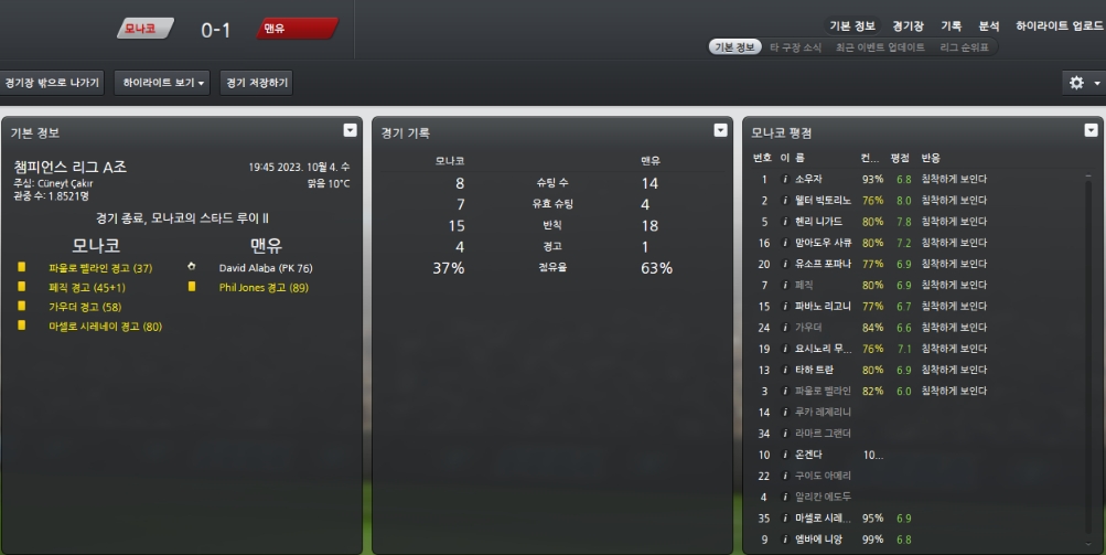 맨유와의경기에서 잘버티다 후반에내준 PK에 패배하였습니다.
