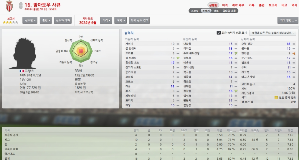 중앙수비와 왼쪽수비를 할수있는 사큐