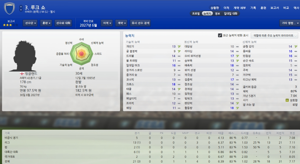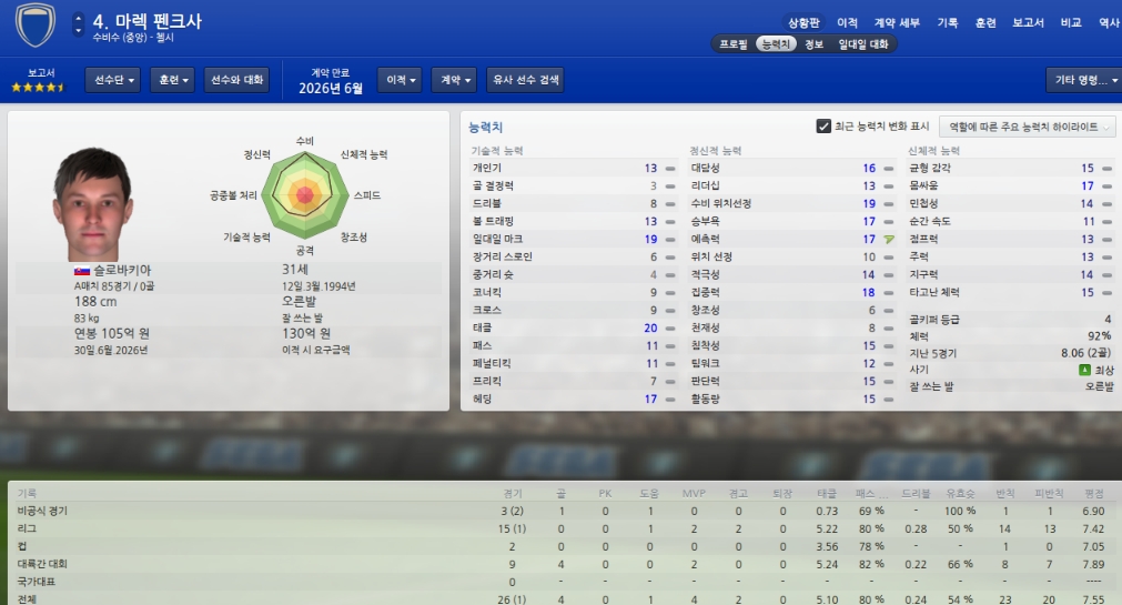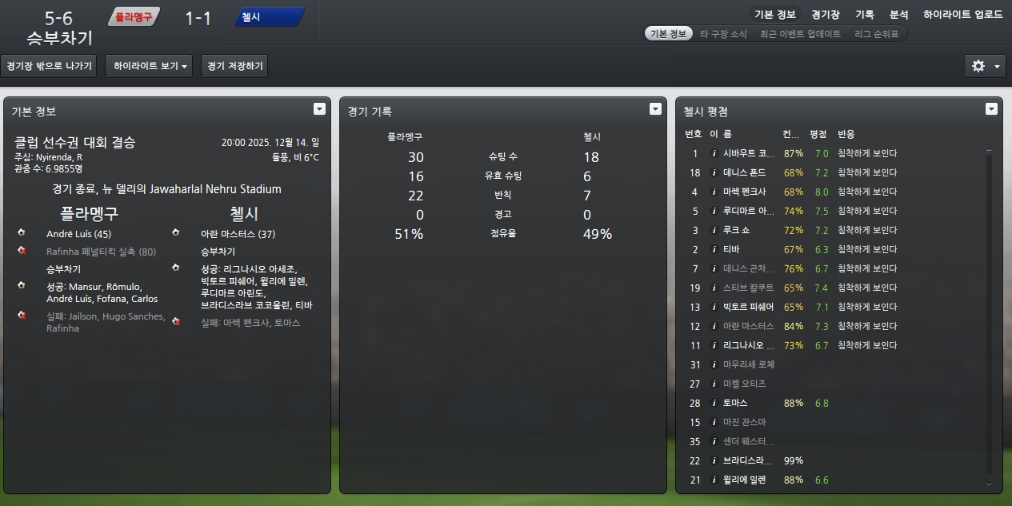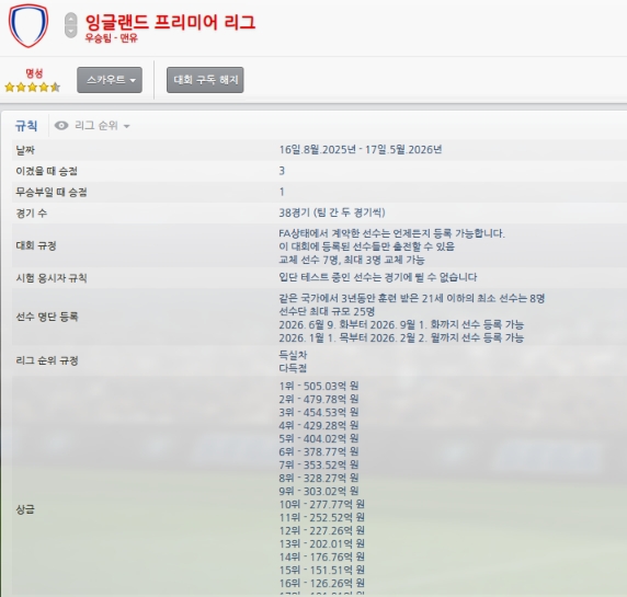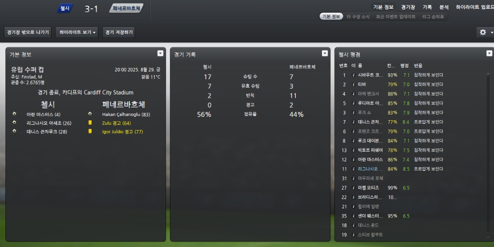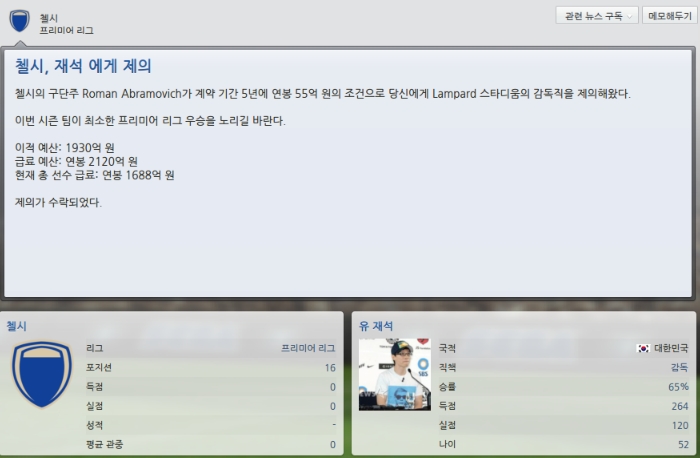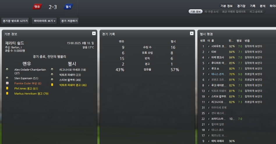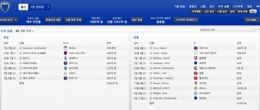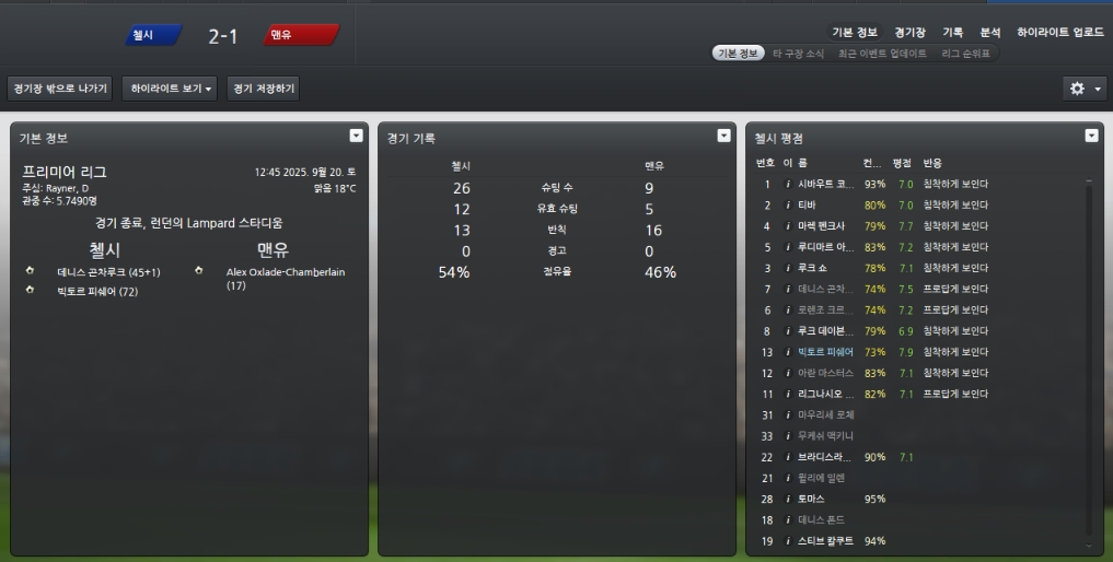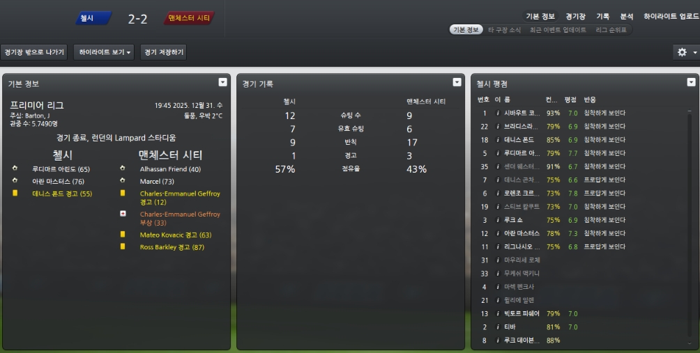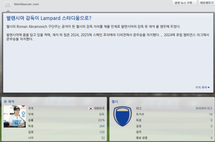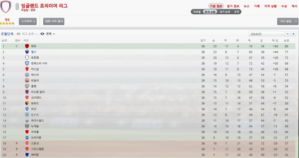 [스샷] FM2013 유재석감독14년차-2)잉글랜드프리미어리그(25/26)2025첼 [4]