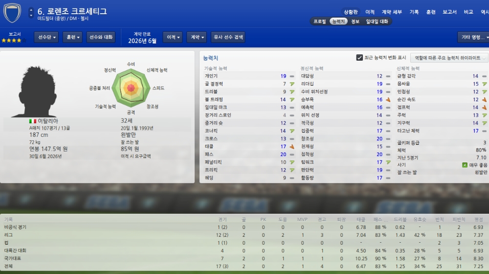 꿀유망주 크리세티그만 남고 생성범벅이 되다니 ㅠㅠ 전 생성범벅되는거 싫어서 생성너프 로스터에 시즌 지날때마다 르테로 선수들 나이 다 1년씩 줄여주고있네요