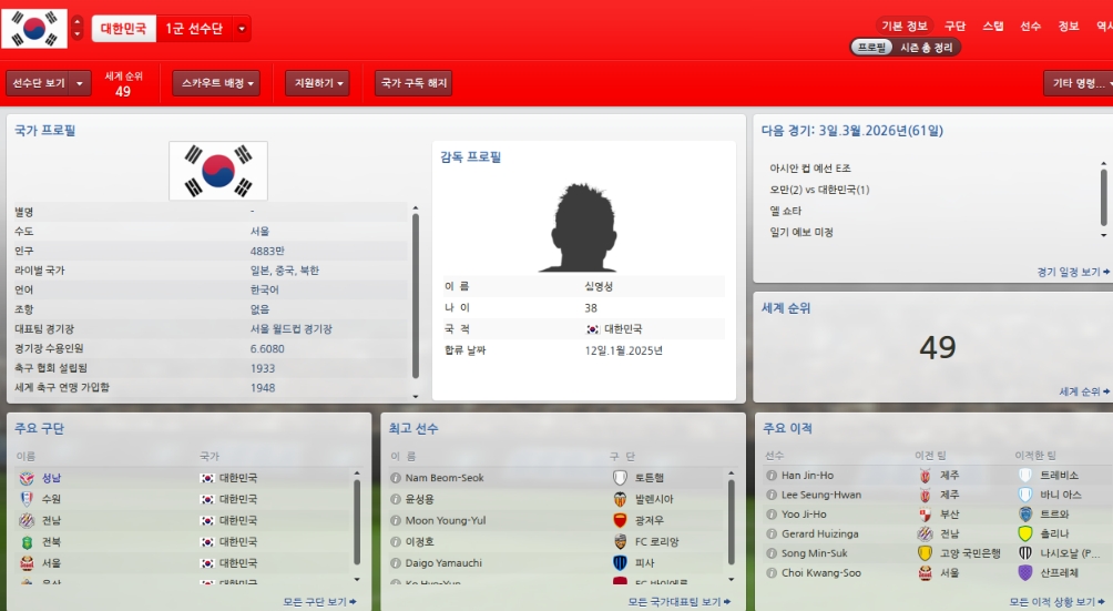 2030년이 넘어가니 대한민국이 엄청 강해지더군요 대형 유망주는 매번 독일에서만 나오고...ㅡㅡ
